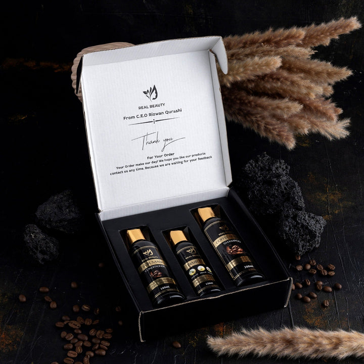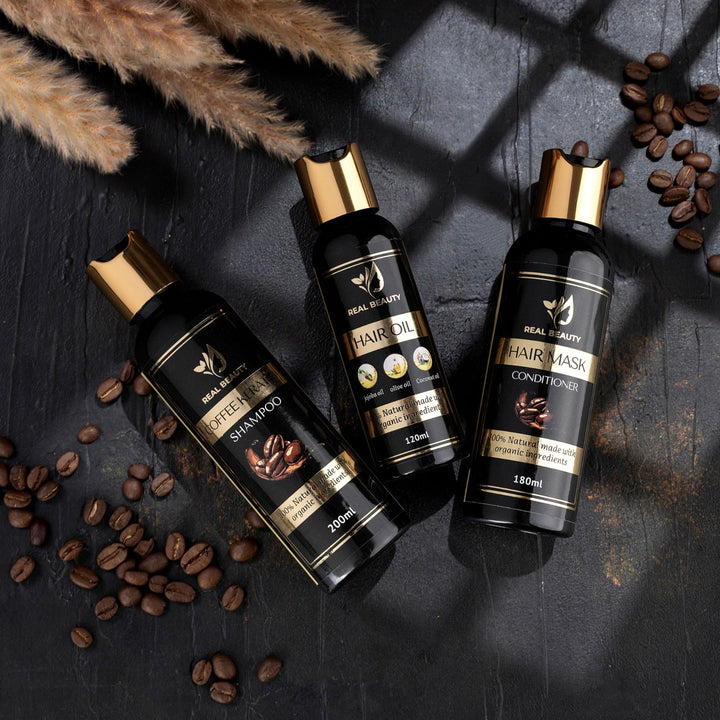 That’s why we created the Real Beauty Complete 3-Step Hair Care Routine — a powerful trio featuring our Coffee Keratin Shampoo, deeply nourishing Hair Mask, and restorative Hair Oil. Together, they deliver a professional-level hair care system that brings back strength, smoothness, and shine — naturally.